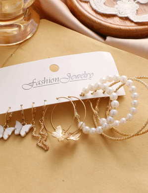 5pairs/set Butterfly & Faux Pearl Decor Earrings