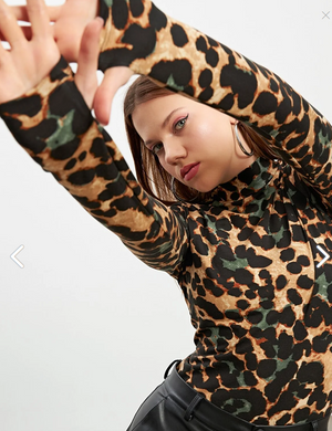 • Bipantolon Kadın Kahverengi Haki Leopar Desenli Parmak Detaylı Body PRMK101