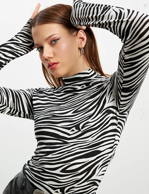 • Bipantolon Kadın Siyah Beyaz Zebra Desen Parmak Detay Body PRMK101