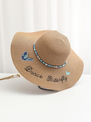 • Butterfly & Letter Embroidered Bead Decor Straw Hat
