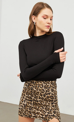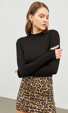 • Bukamiss Kadın Siyah Bisiklet Yaka Parmak Detaylı Body prmk1