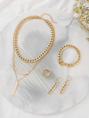 Chain Design Drop Earrings & Ring & Necklace & Bracelet