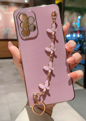 Contrast Frame Phone Case With Butterfly Decor Handstrap