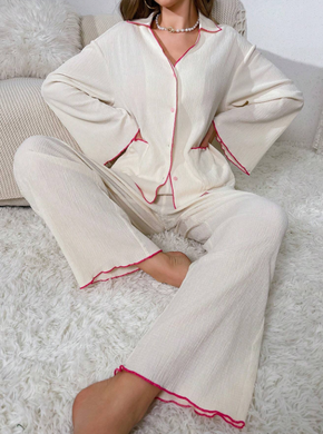 Contrast Binding Button Front PJ Set