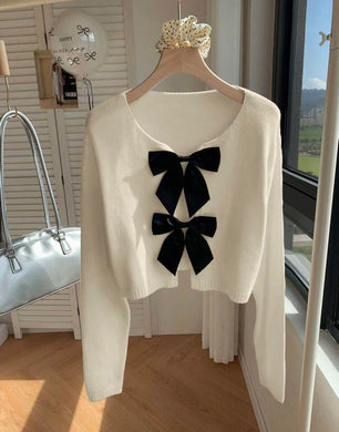 Comfortcana كارديجان نسائي بياقة مستديرة مع ربطة عقدة الفراشة، كاجوال للارتداء اليومي، ملائم للخريف/الشتاء، بأكمام طويلة
