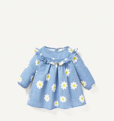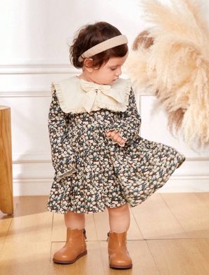 Cozy Cub فستان سموك بطباعة أزهار اقحوان عقدة الفراشة أمامية ياقة كبير مبالغ فيه للبنات الاطفال