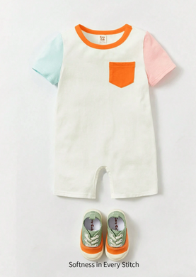 Cozy Cub Baby Boy Colorblock Patched Pocket Contrast Binding Romper