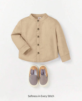 Cozy Pixies قميص صبي رسمي صلب بياقة واقفة وزر أمامي