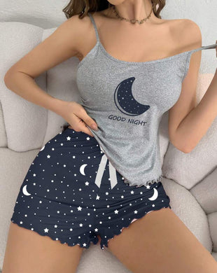 CoupledUp طقم بيجامة نسائي بطباعة القمر