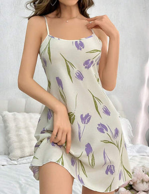 CottageSlumber ثوب نوم فستان الباجامة بحمالات اسباجيتي بطبعة الزهور