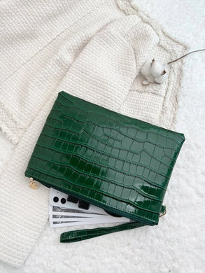 Crocodile Embossed Square Bag With Wristle