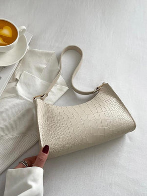 Crocodile Embossed Baguette Bag Zipper Beige Elegan