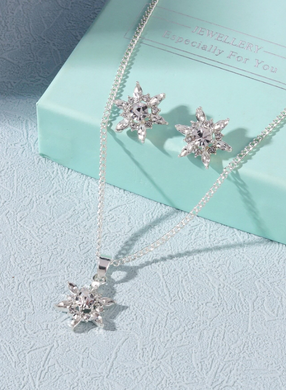 Crystal Decor Flower Pendant Necklace With Stud Earrings