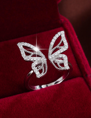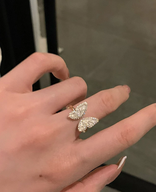 Cubic Zirconia Butterfly Decor Cuff Ring