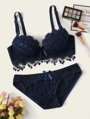 Crochet Trim Underwire Lingerie Set
