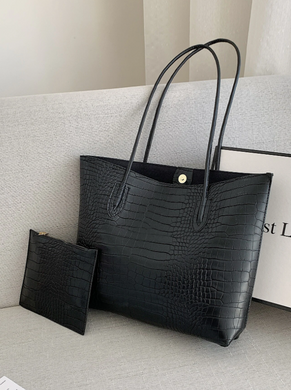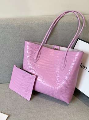 Crocodile Embossed Shoulder Tote Bag Double Handle With Coin Purse