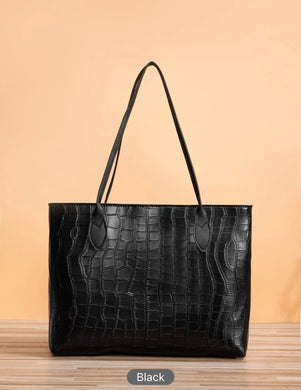 Crocodile Embossed Shoulder Tote Bag