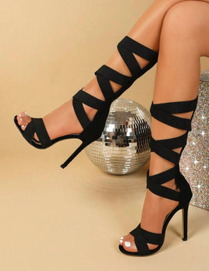 Cross-Tied Roman Style Large Size Women Sandals With Elastic Band, High Heels And Open Toe In European And American Style