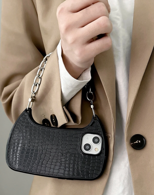Crocodile Embossed Phone Case With Chain Handstrap