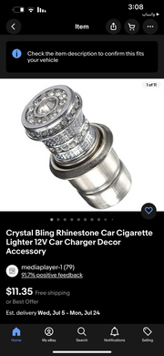 Crystal Bling Rhinestone Car Cigarette Lighter 12V Car Charger Decor Accessory