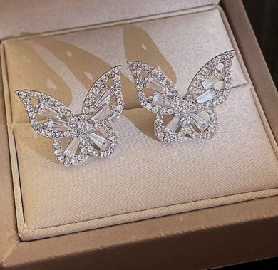 Cubic Zirconia Butterfly Decor Stud Earrings
